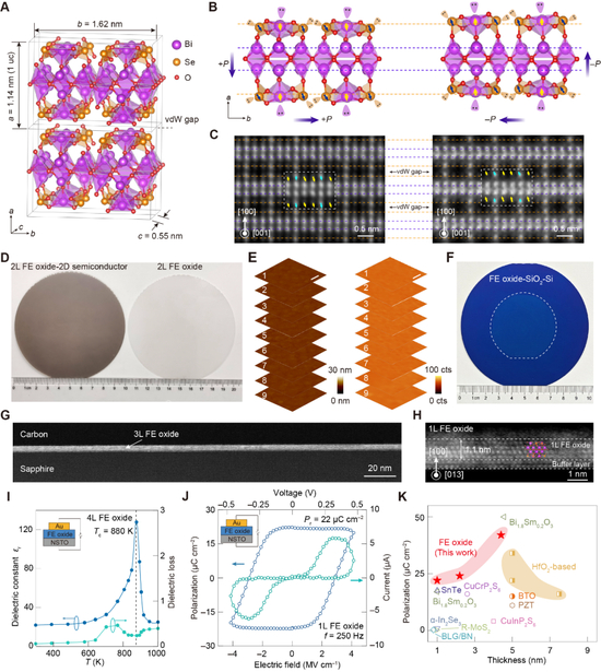 二维高κ铁电氧化物α-Bi2SeO5的晶圆级均匀制备及铁电性 。